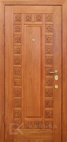 Фото «Входная дверь светлый дуб с резными розетками для квартиры №10»