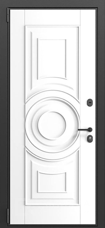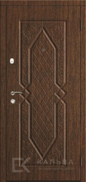 Фото «Входная дверь тёмный дуб с резьбой и белым кругом №538»